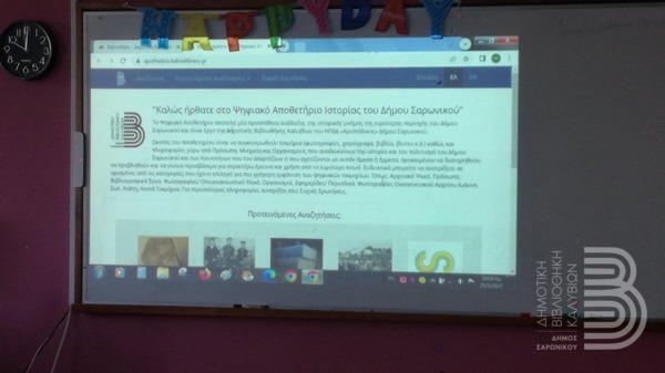 Σκοπός να γνωρίσουν οι μαθητές μια από τις υποδομές της Βιβλιοθήκης μας. Ο λόγος για το Ψηφιακό Αποθετήριο Ιστορίας του Δήμου Σαρωνικού.