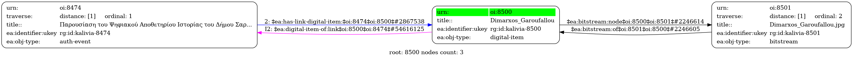 Internal display of the 8500 entity interconnections (Node labels correspond to identifiers)
