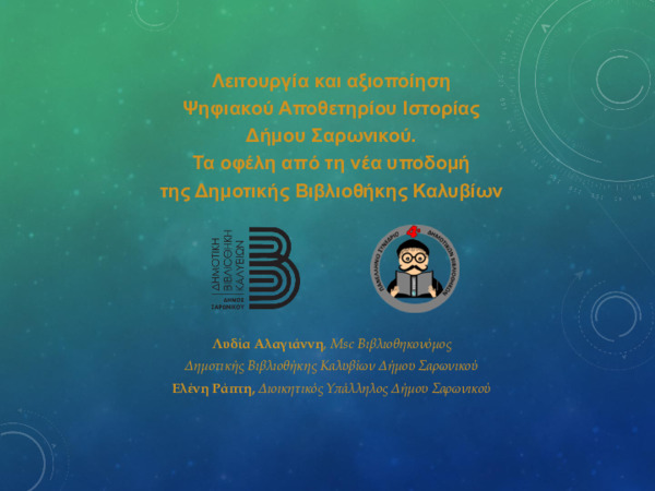 Εγγενώς Ψηφιακό Έγγραφο: Λειτουργία και αξιοποίηση Ψηφιακού Αποθετηρίου Ιστορίας Δήμου Σαρωνικού. Τα οφέλη από τη νέα υποδομή της Δημοτικής Βιβλιοθήκης Καλυβίων
