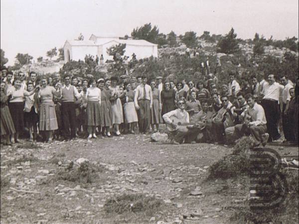 Φωτογραφία από γλέντι στο εξωκλήσι της Ζωοδόχου Πηγής στο όρος Πανί το 1953 [1953]
