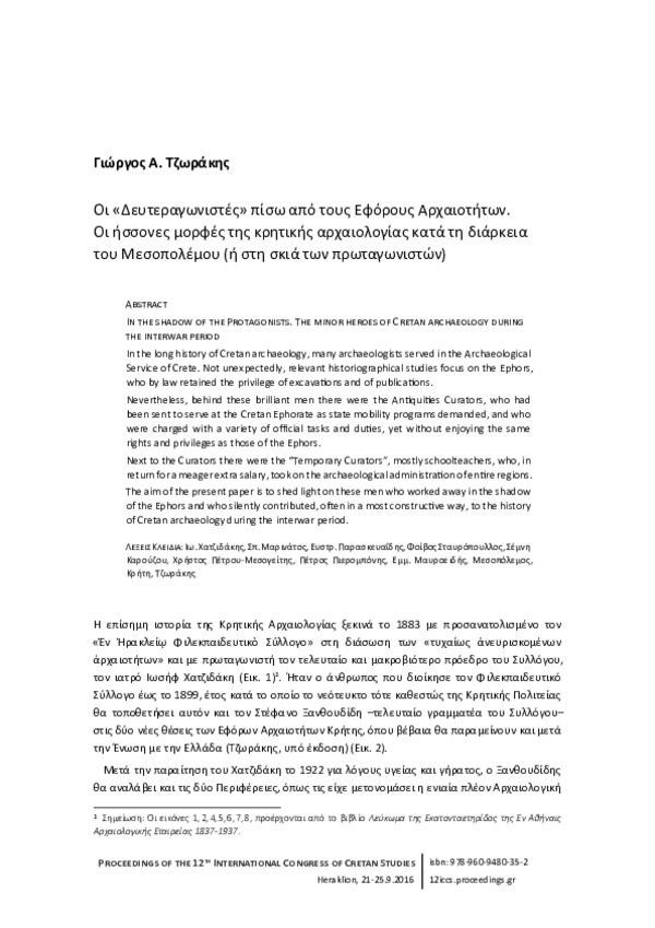 Εγγενώς Ψηφιακό Έγγραφο: Οι "Δευτεραγωνιστές" πίσω από τους Εφόρους Αρχαιοτήτων. Οι ήσσονες μορφές της κρητικής αρχαιολογίας κατά τη διάρκεια του Μεσοπολέμου (ή στη σκιά των πρωταγωνιστών) - Identifier: 8822