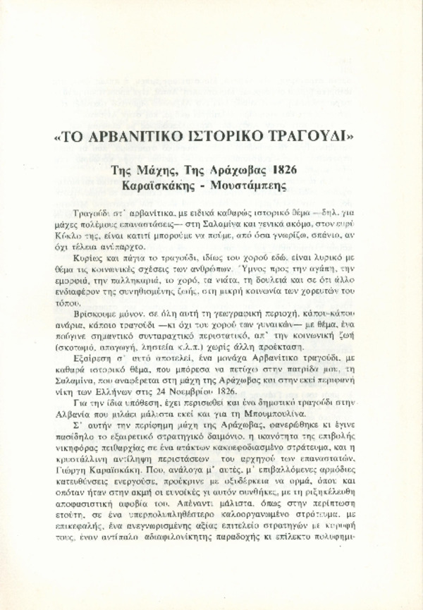 - Ψηφιοποιημένο Απόκομμα: Απόσπασμα με τίτλο "Το αρβανίτικο ιστορικό τραγούδι"