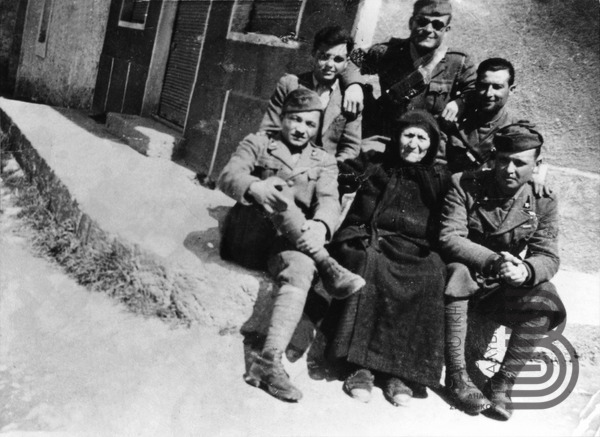 Photo of Italian soldiers in Kalivia, Evangelos Per. Kareliotis and Aggeliki Sideri (Stamatosideraina) among them [Αγγλική]