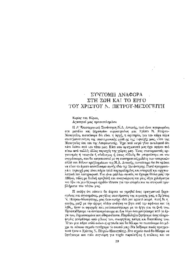 Εγγενώς Ψηφιακό Έγγραφο: Σύντομη αναφορά στη ζωή και το έργο του Χρίστου Ν. Πέτρου - Μεσογείτη