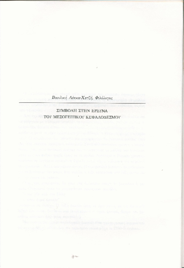 Ψηφιοποιημένο Έγγραφο: Συμβολή στην έρευνα του μεσογείτικου κεφαλόδεσμου