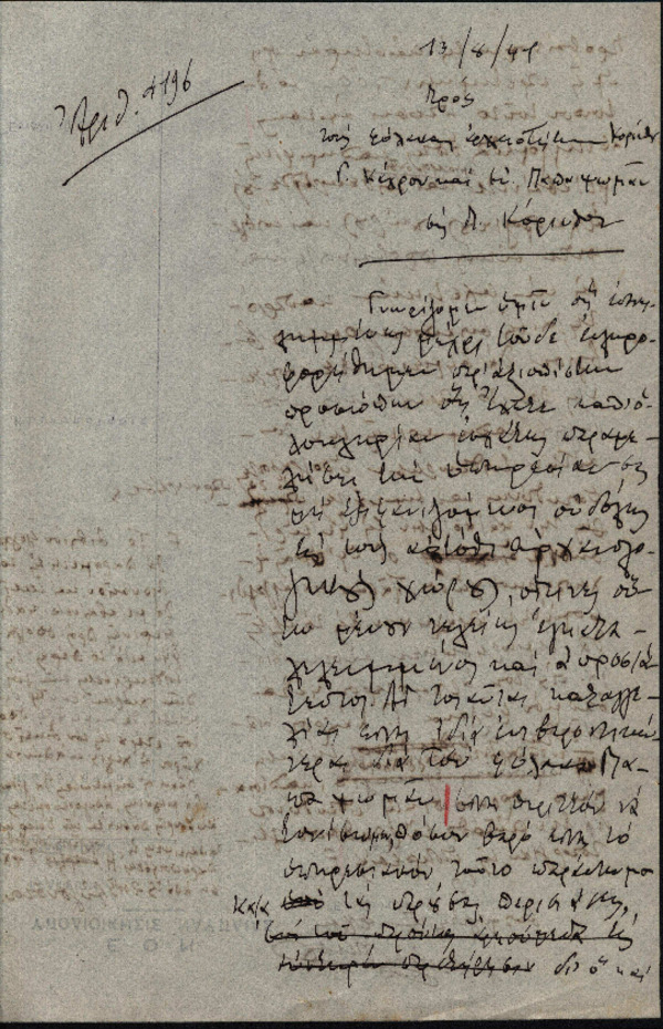 Part of the: Υπηρεσιακή αλληλογραφία ως έφορος Αθηνών