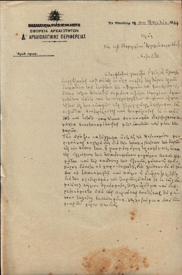 Part of the: Υπηρεσιακή αλληλογραφία ως έφορος Ναυπλίου