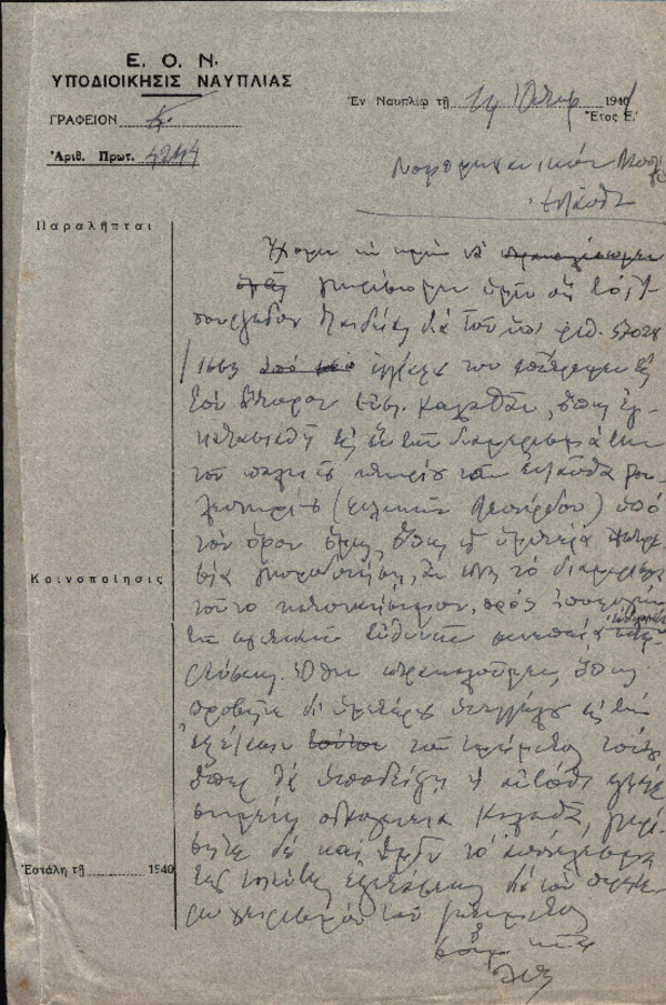 Part of the: Υπηρεσιακή αλληλογραφία ως έφορος Ναυπλίου