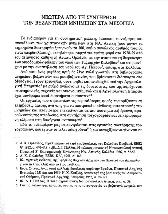 Recent news of the restoration of byzantine monuments in Mesogeia [english]
