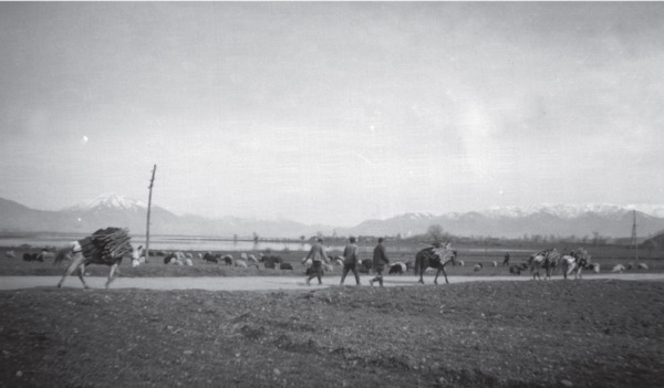 Φωτογραφία με τίτλο "Χωρικοί στο δρόμο για την Κορυτσά"