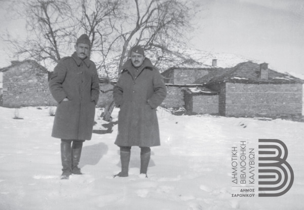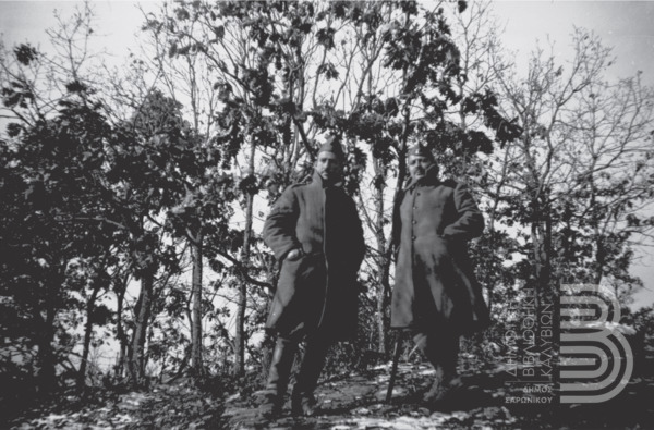 Φωτογραφία με τίτλο "Ο Χρίστος Ν. Πέτρου-Μεσογείτης και συστρατιώτης του σε ύψωμα βόρεια του Μαλίκ"