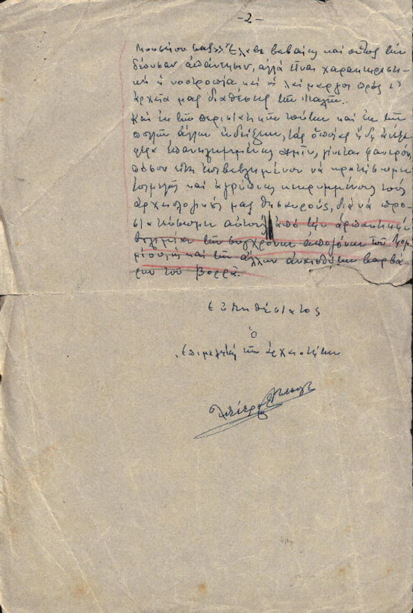 Μέρος επιστολής Χ. Πέτρου-Μεσογείτη με θέμα "Επιθυμία Ιταλών για απόκτηση αρχαιολογικών ευρηματων"