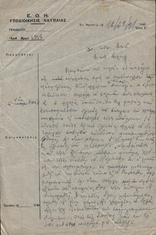 Μέρος του: Υπηρεσιακή αλληλογραφία ως έφορος Ναυπλίου