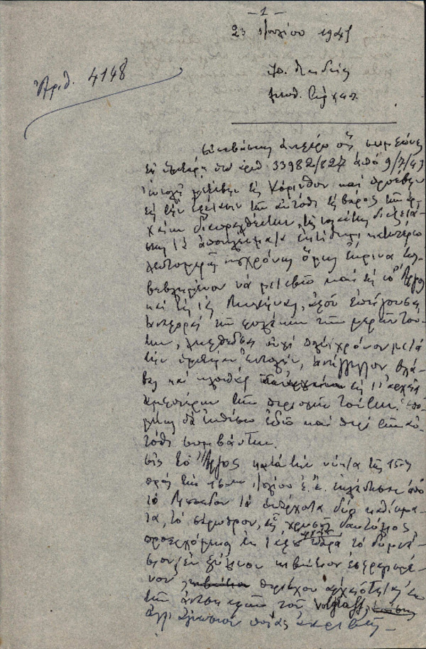 Υπογράφων: Πέτρου - Μεσογείτης, Χρίστος Ν. (1909-1944) Τόπος: Ναύπλιο Τύπος: Επαγγελματική αλληλογραφία Συλλογή: Αρχείο Χρίστου Ν. Πέτρου - Μεσογείτη Αναγνωριστικό: Α1.Υ1.Σ1.Υ4.Φ10166 Αρχείο: Αρχείο Χρίστου Πέτρου Μεσογείτη Μέρος του: Υπηρεσιακή αλληλογραφία ως έφορος Ναυπλίου