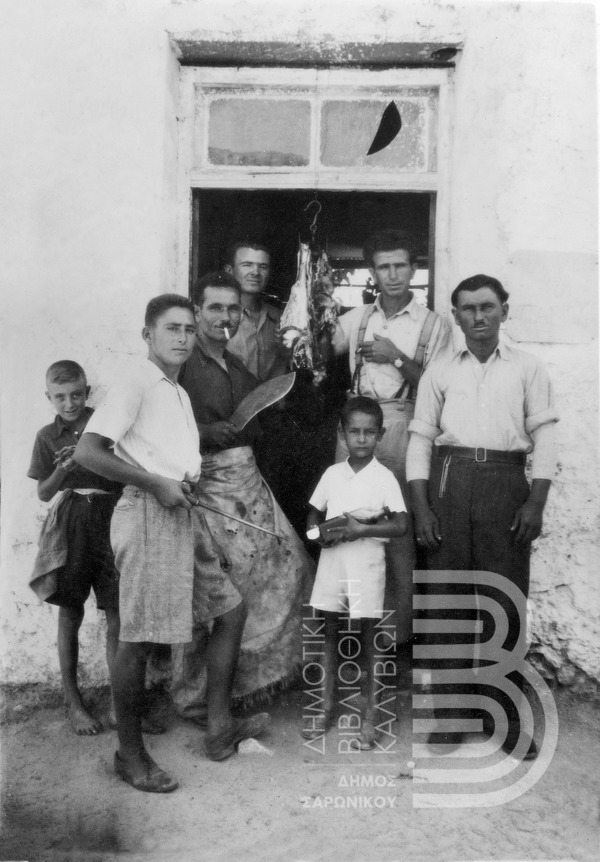Τίτλος σε άλλη γλώσσα: Photo of Ioannis Adamis's butcher-shop [Αγγλική] Ημερομηνίες: 1950 Συλλογή: Τεκμήρια από το λεύκωμα "Καλύβια : μνήμες σε άσπρο και μαύρο φόντο"