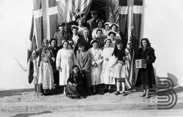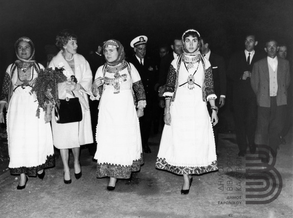 Photo of young Kalivians in local attires welcoming a delegation of the 6th American Fleet in Kalivia [Αγγλική]